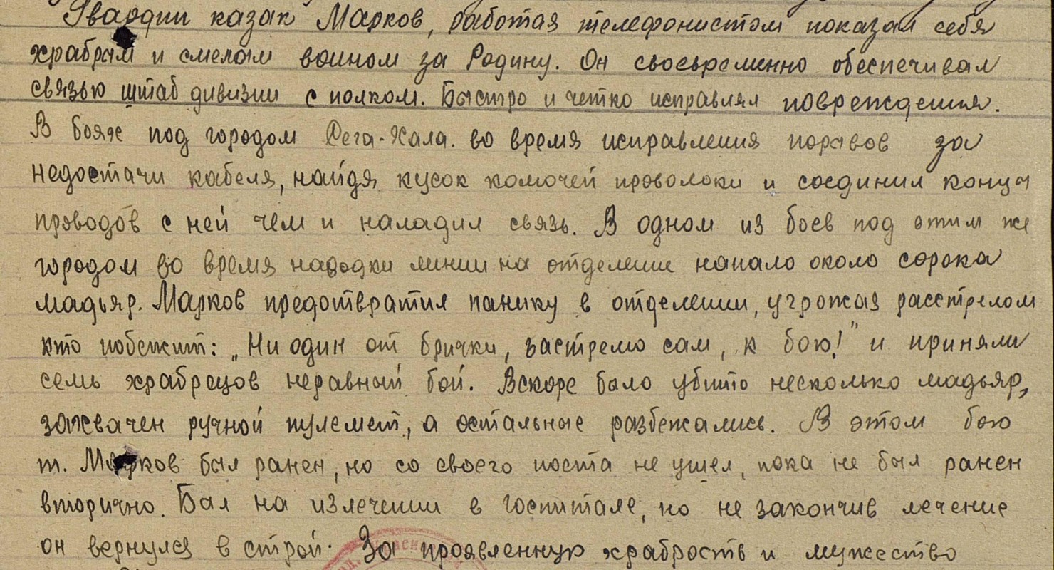 описание подвига " Орден Красной звезды" из материалов ЦА МО РФ