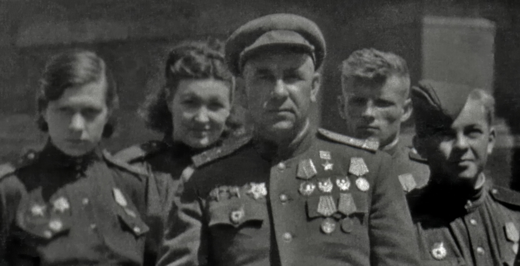 В.И.Суббочева, И.А.Власенко, Л.Ф.Бондаренко (в первом ряду слева направо). Конец мая 1945. Берлин.