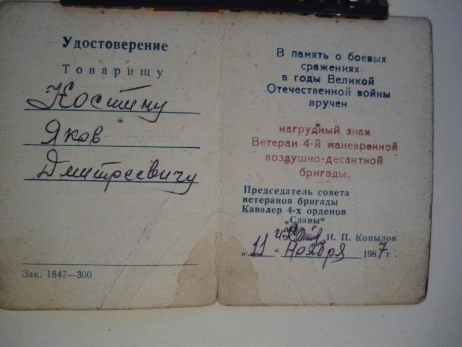 Семейные реликвии Костина Якова Дмитриевича - служил десантником в разведывательной роте.