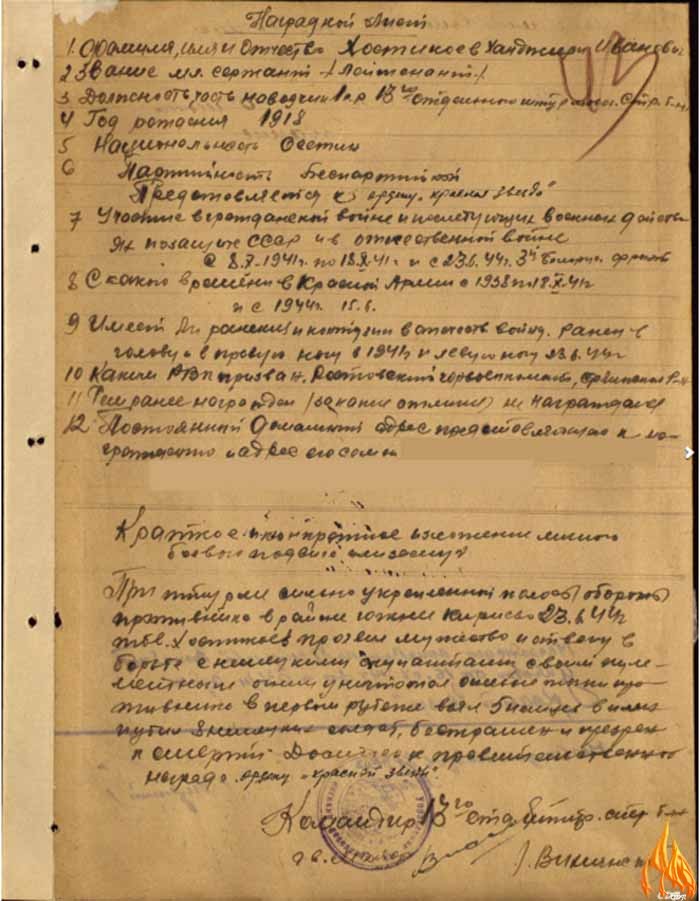 Мой отец, Мармерштейн Хаим Самойлович, политрук Красной Армии (рота 482 отдельного...