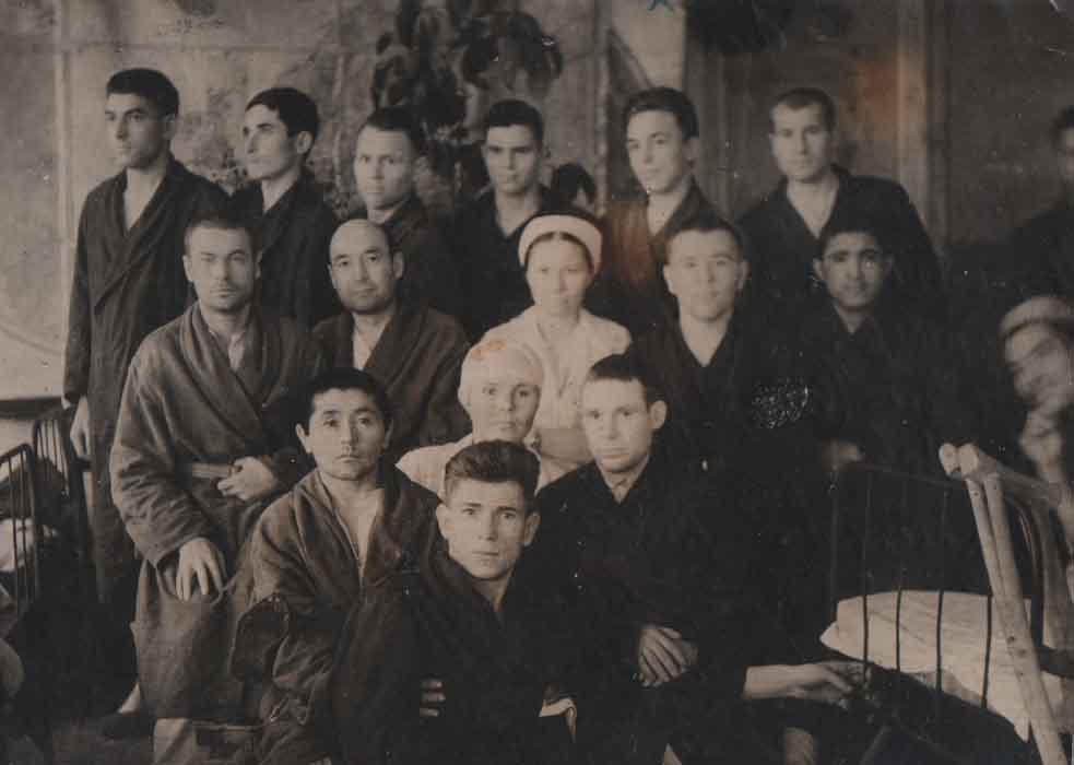 Пациенты эвакогоспиталя (Оголихин А.И. – второй справа в верхнем ряду) в городе Ижевск [1944 год].