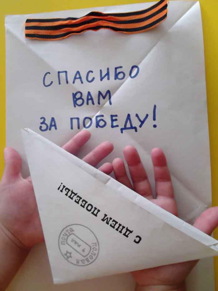 "Письмо-треугольник ребёнка фронтовику-ветерану с благодарностью за мирное небо и счастливое детство" Самойлова Дарья, 6 лет, город Лабинск ул. Ореховая 16, Краснодарский край, Россия. письмо фронтовику Интернет акция «ДЕТИ РОССИИ - ЗА МИР!»