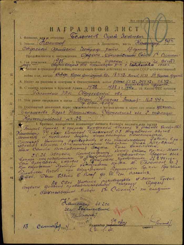 Семейные реликвии Белоносова Сергея Яковлевича - За свое умелое руководство и личные боевые подвиги награжден посмертно Орденом «Отечественной войны» I степени.
