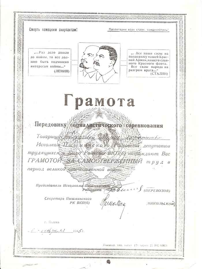 Семейные реликвии Нагибиной Зинаиды Филагревны - Во время Великой Отечественной войны работала в тылу.