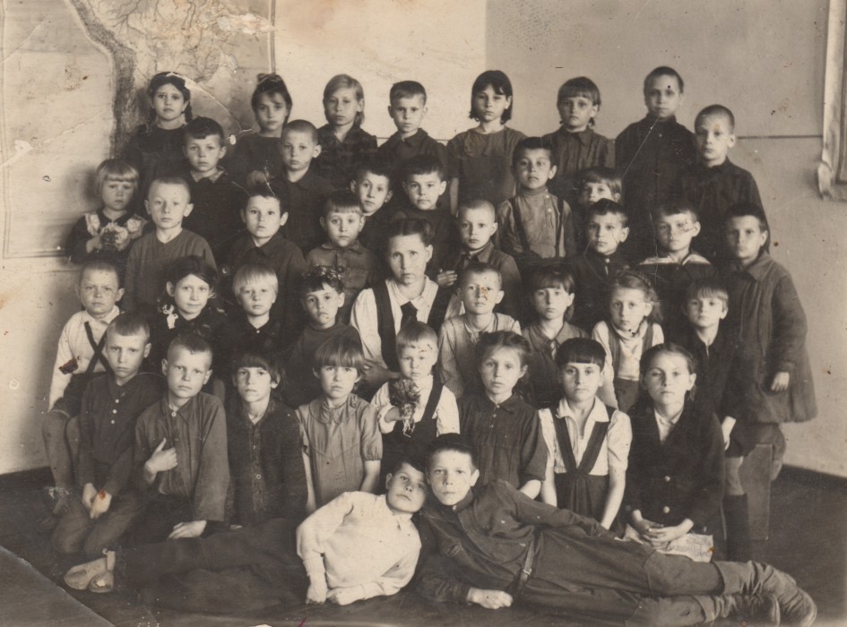 в центре прабабушка Летягина Мария Ильинична с учениками, фото из семейного архива, 1945