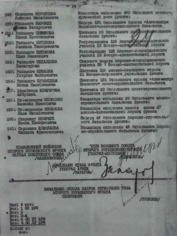 Семейные реликвии Шуваева Георгия Фёдоровича - Приказ, под номером 255- фамилия плотника Шуваева Г.Ф.