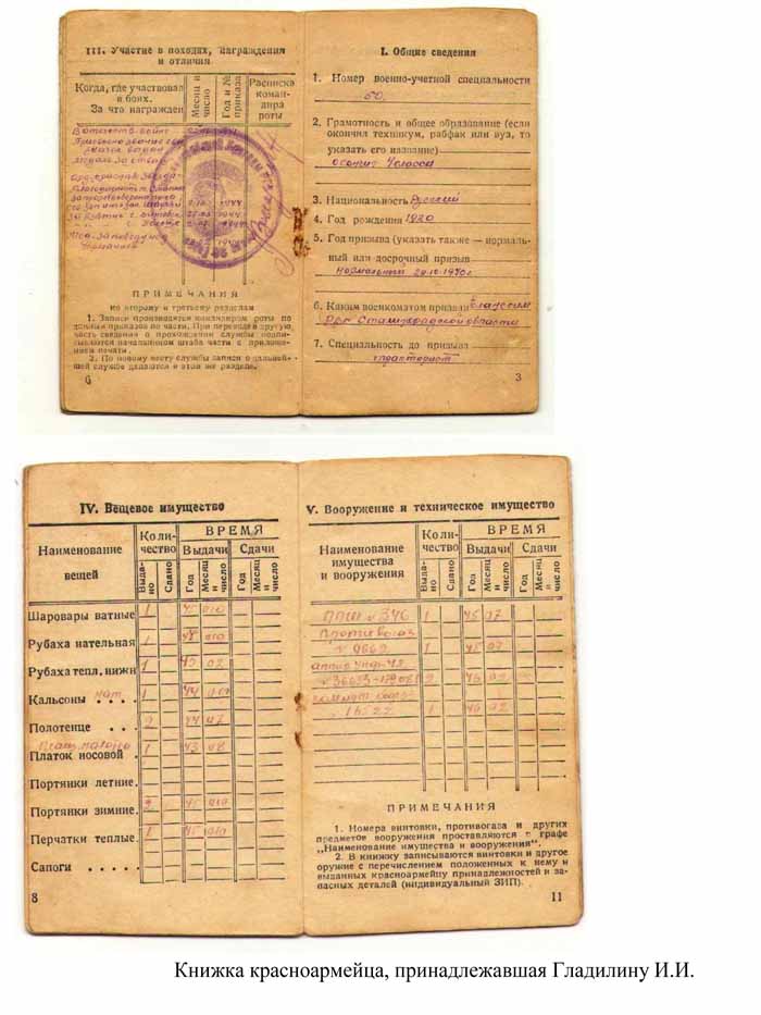 Гладилин Иван Иванович, родился 23 сентября 1920 года в с.Терса Еланского района Сталинградской области. Был призван на службу в октябре 1940 года и был демобилизован в марте 1946 года. Великую отечественную войну закончил в звании младший сержант, в должности - старший телефонист.