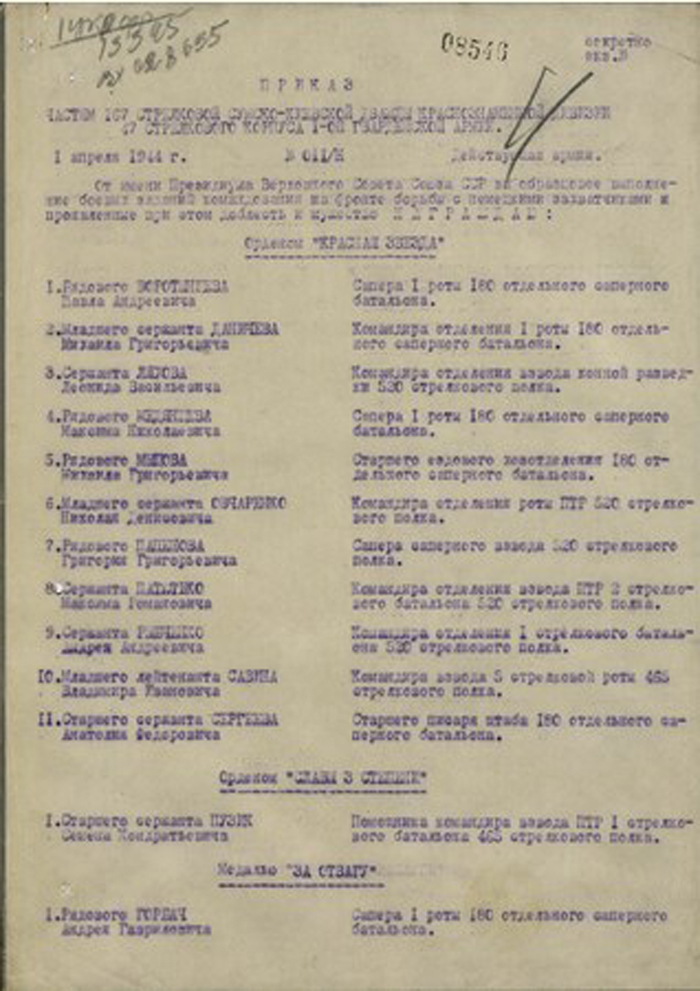 В апреле 1945 участвовал в операциях по прорыву сил противника на подступах к городу Морвска Острава, а также форсированию реки Ордер на окраине г. Моравска и был награжден Орденом Мужества 3 степени.