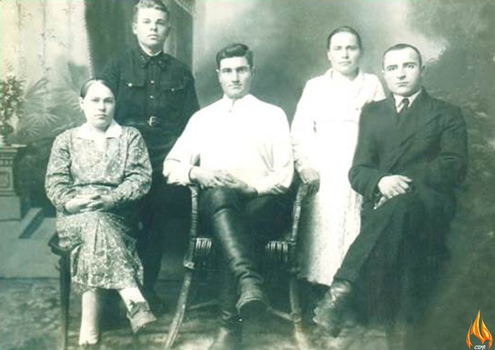 На фронт в действующую армию призван летом 1942 года. Меткий стрелок, он был и пулеметчиком станкового пулемета «Максим», и снайпером. (на фото в центре)
