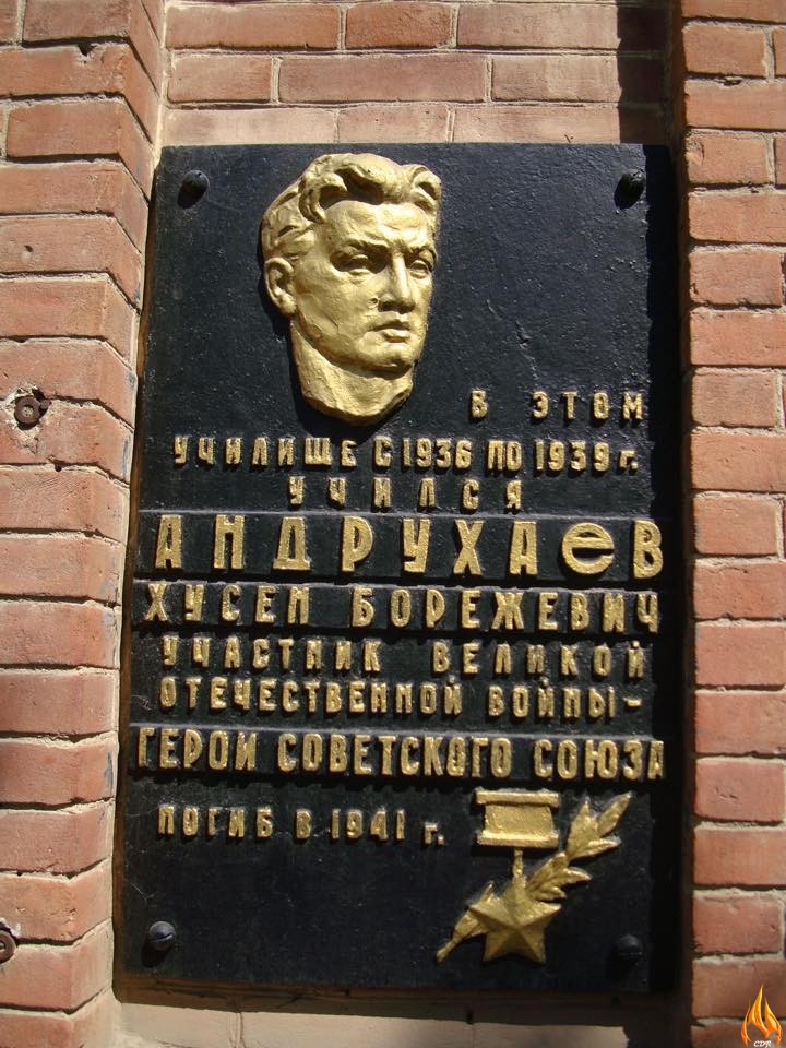 8 ноября 1941 года в ожесточённом оборонительном бою на окраине села Дьяково, Луганской области, Хусен Андрухаев, окруженный гитлеровцами, крикнул «Русские не сдаются!» и подорвал себя и окруживших его вражеских солдат связкой противотанковых гранат...