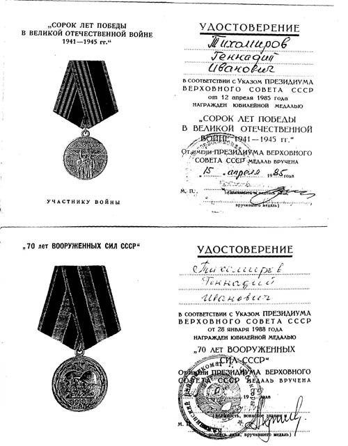 Всего у Геннадия Ивановича Тихомирова более 20 различных наград.