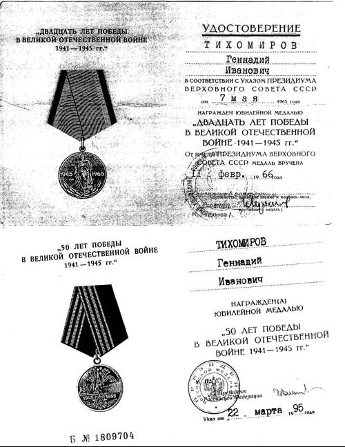 Всего у Геннадия Ивановича Тихомирова более 20 различных наград.